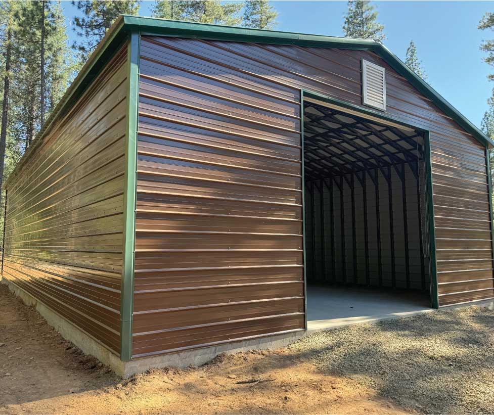 • Clear-Span Versatility: Our metal garages offer wide-open interiors with no internal supporting columns, maximizing your usable space.